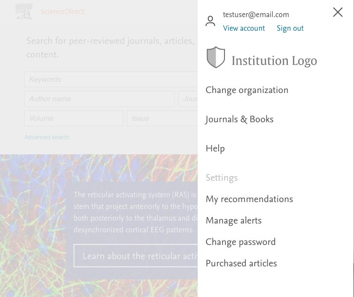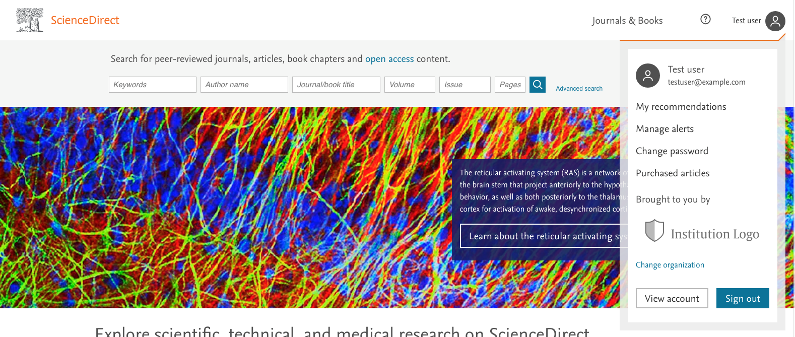 Administrators can customize the ScienceDirect Header by uploading their logo, reminding their users that access is provided by their organization.