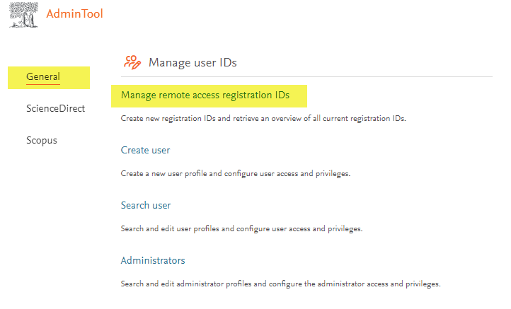 - Under 'Manage User IDs', click on 'Create/Manage Remote Access Registration IDs'.
