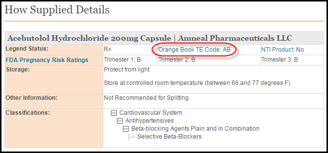 Clinical Pharmacology reports these therapeutic equivalence ratings as designated within the Approved Drug Products with Therapeutic Equivalence Evaluationswhich is referred to as the 'Orange Book'.