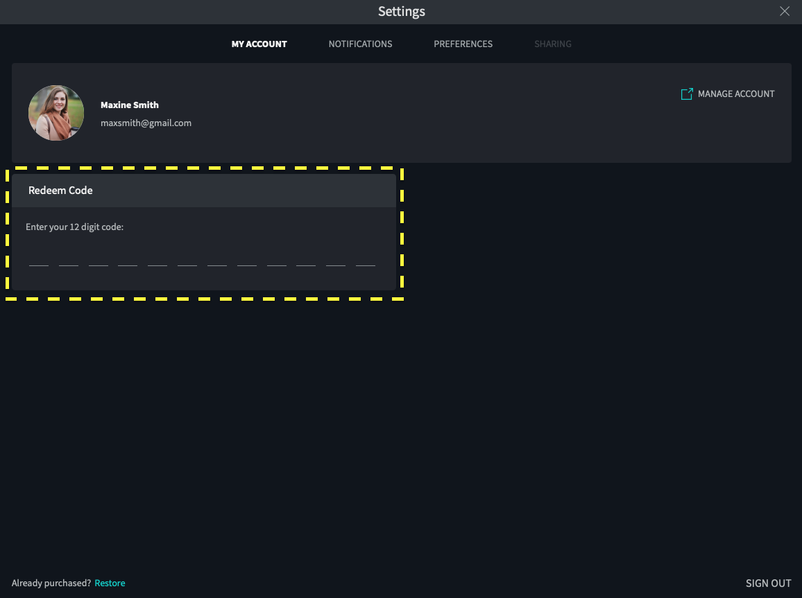 If you have already created an account, log in with your institutional account and go to Settings. Under the My Account tab, you will see a Redeem Code section where you can enter your 12-digit code.