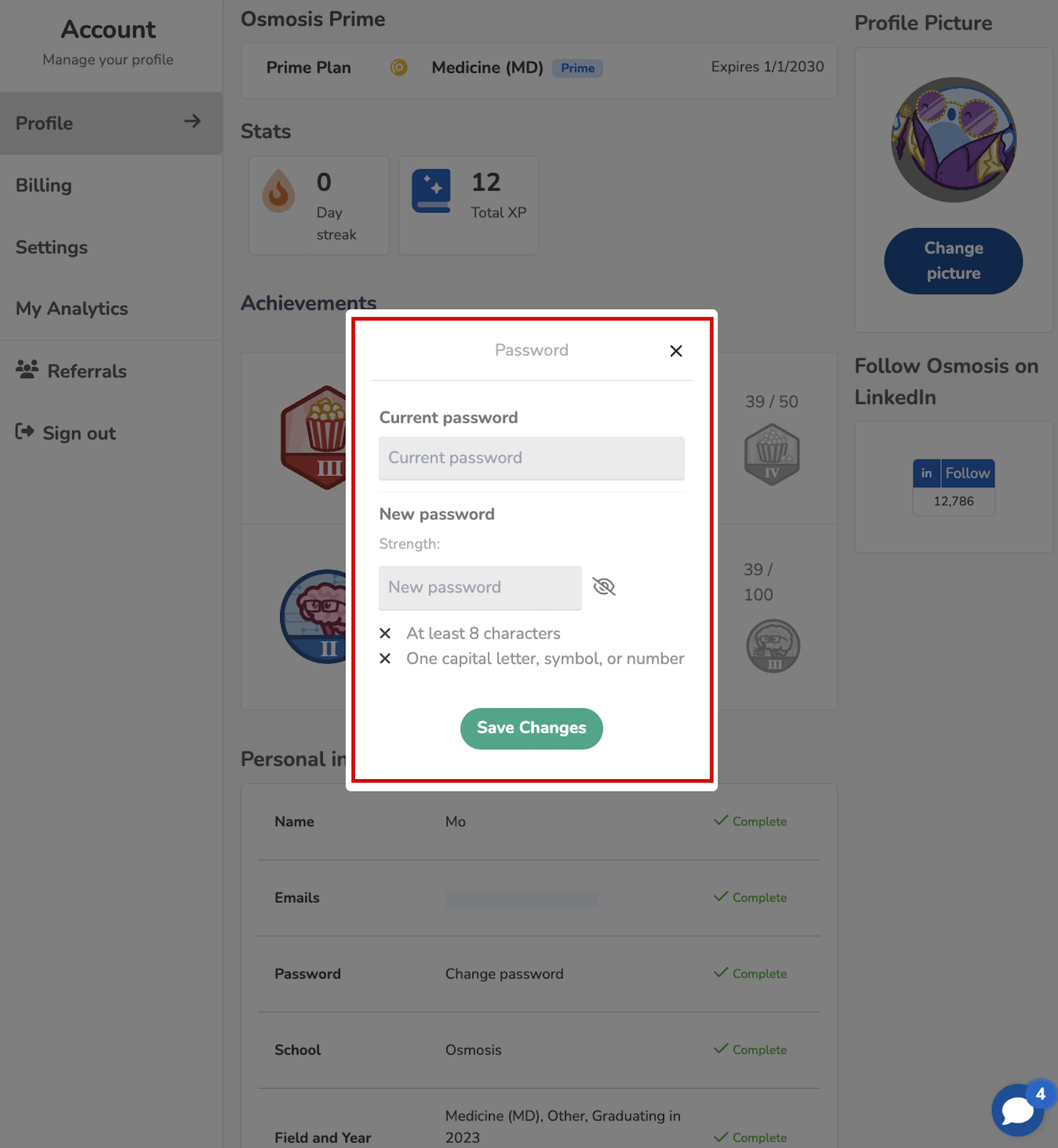 If you need to change your password for your Osmosis account, follow these steps: