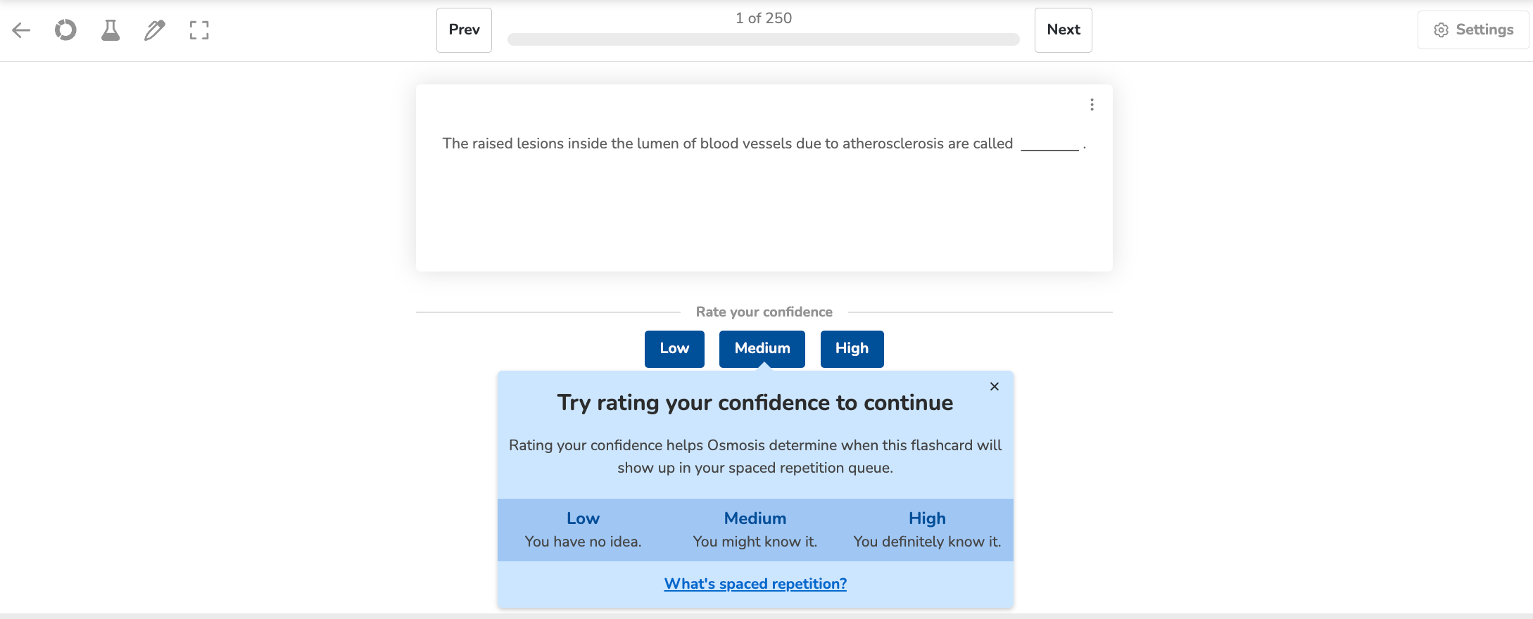 Flashcards Only: Please remember that only flashcards are included in Spaced Repetition. Board-style questions are designed for quick memorization and are not suited for this learning method.