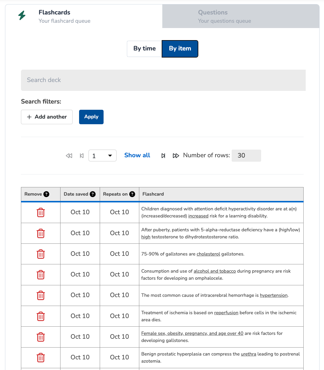 To view everything you've saved or consumed in your Flashcard and Question Queues, follow these steps: