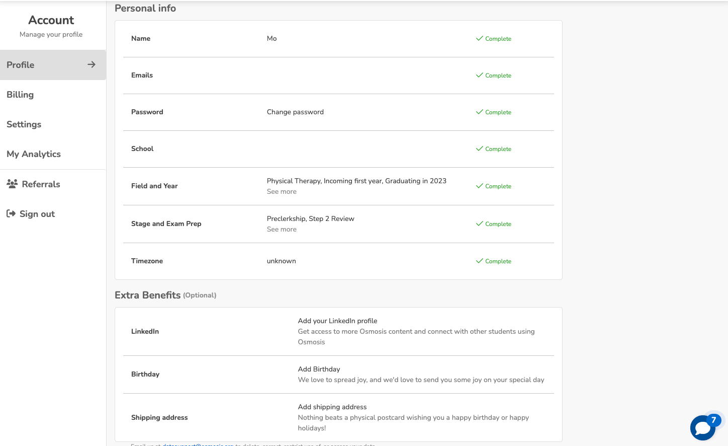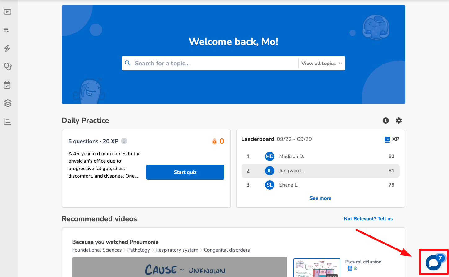 Contact Support: Click on the Support Chat located in the bottom right corner of your Osmosis page to connect with our support team.