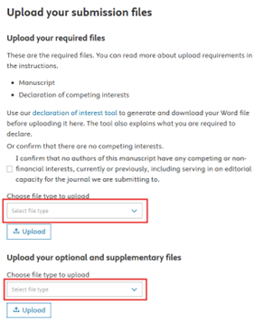 Please note that the manuscript and the ‘Declaration of Competing interests’ files are mandatory across all journals. Additional files may also be mandatory at the discretion of the journal.