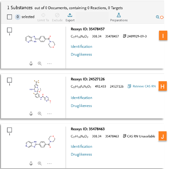 Substances are identifiable in many different ways: Reaxys ID, INCHI, Smiles, chemical name etc. CAS registry number (RN) is a popular identifier and an area where we saw an opportunity to enhance their availability within Reaxys. While Reaxys contains many CAS RN’s, obtained mainly through a former collaboration with CAS (CAS/Elsevier mutual information exchange) many Reaxys structures do not contain a CAS RN. With the latest release we now offer a new feature that will enable you to retrieve CAS RN’s for Reaxys substances that didn’t have them before.