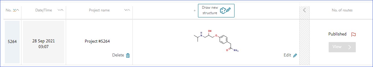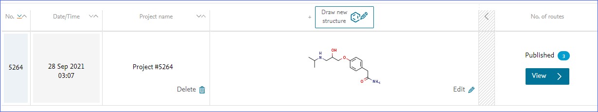Once Reaxys has successfully prepared retrosynthesis plans for a given target molecule the project page will show a 'View' button.
