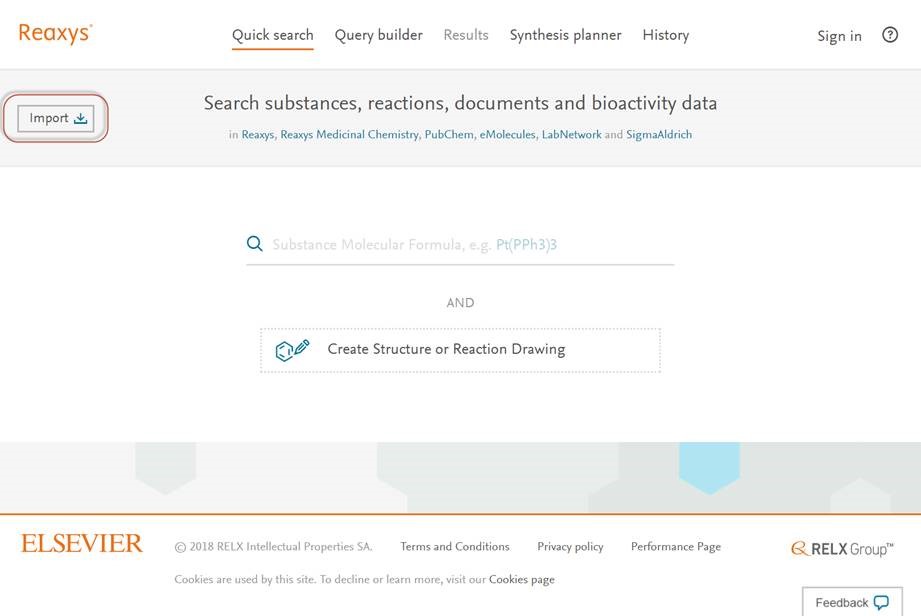 - Click ‘Import’ on the left side of the top banner on the Quick Search (view screenshot) or Query Builder page (view screenshot).