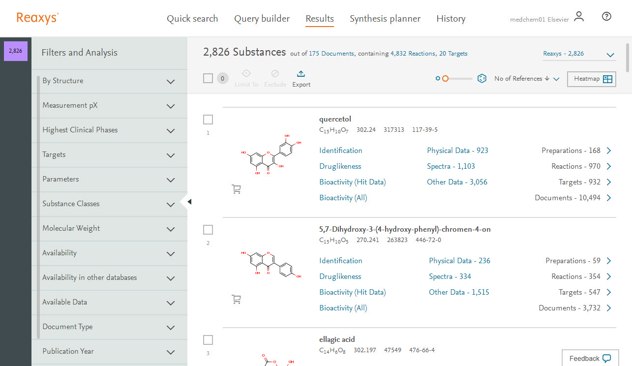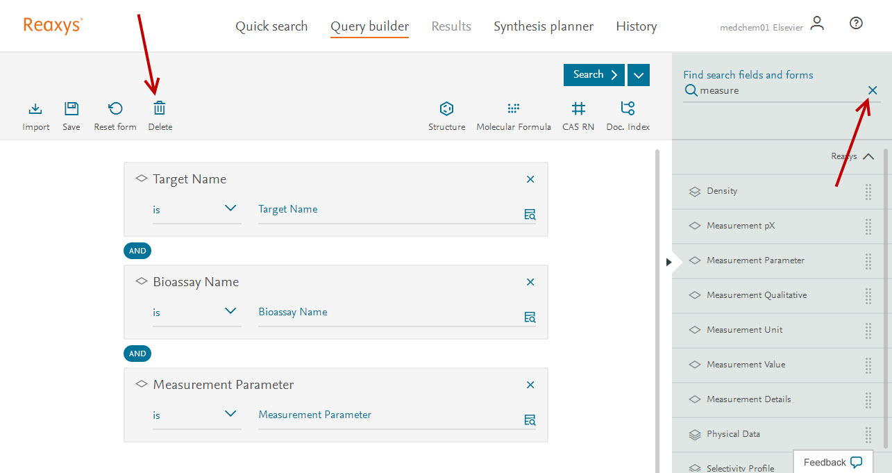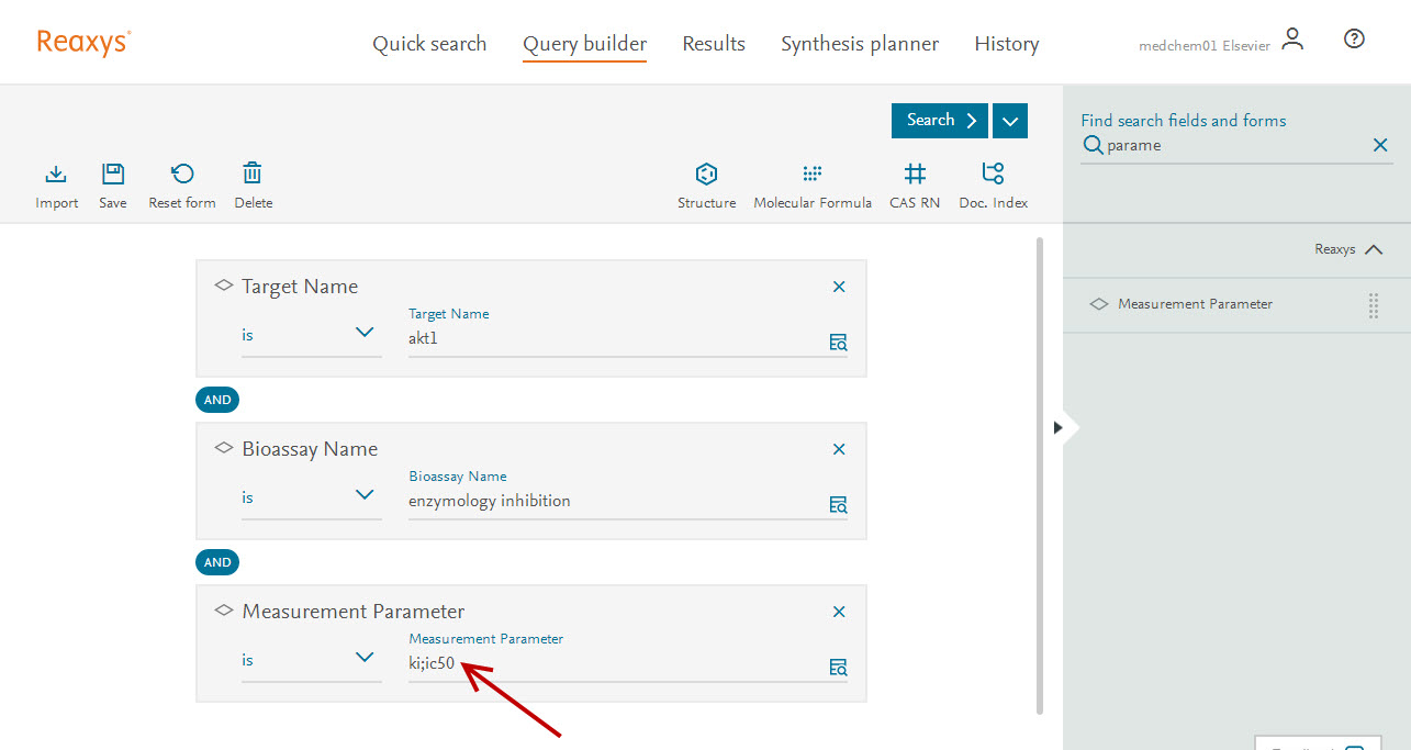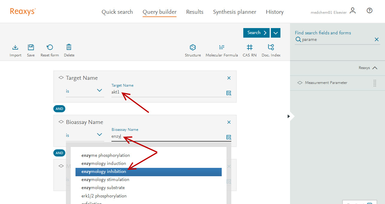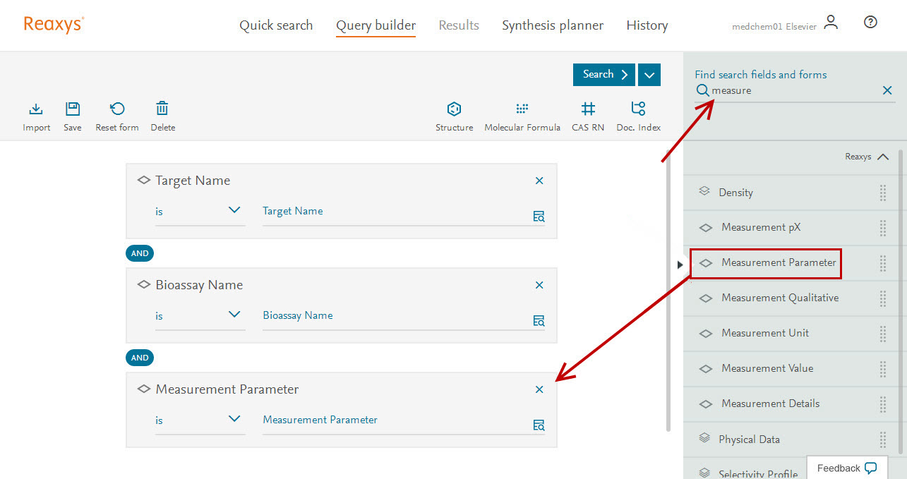 - Build a query using predefined forms dedicated to medicinal chemistry within Reaxys.