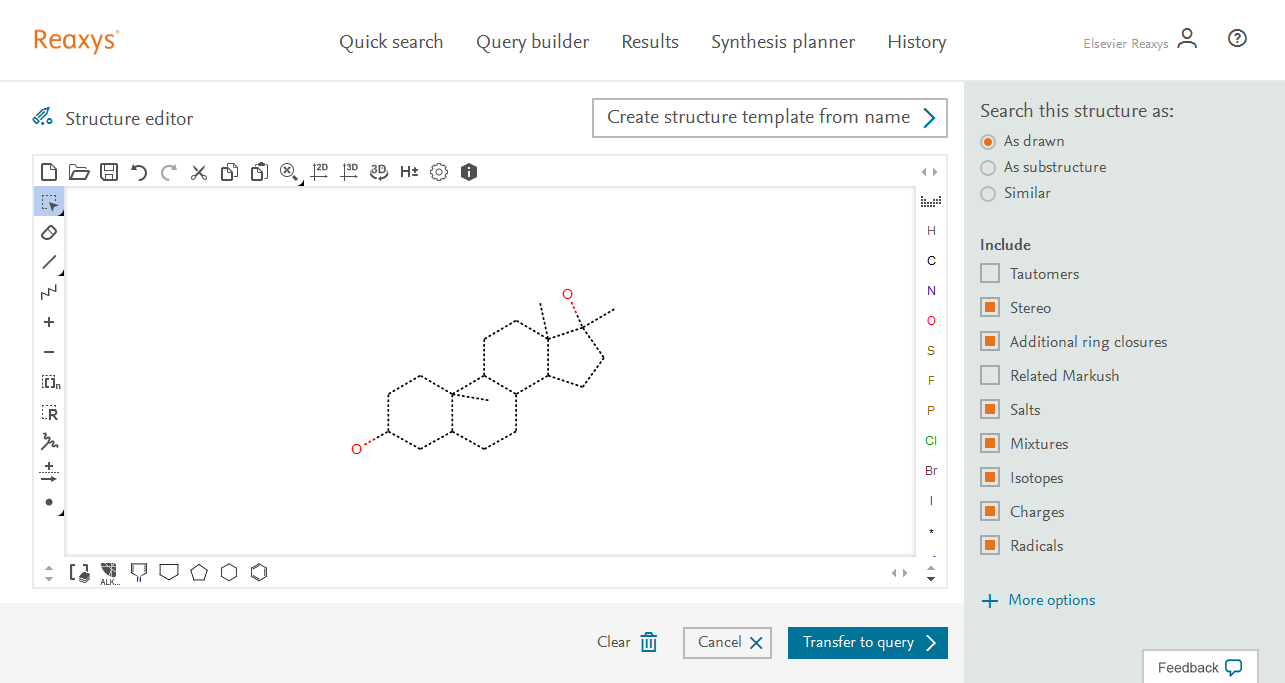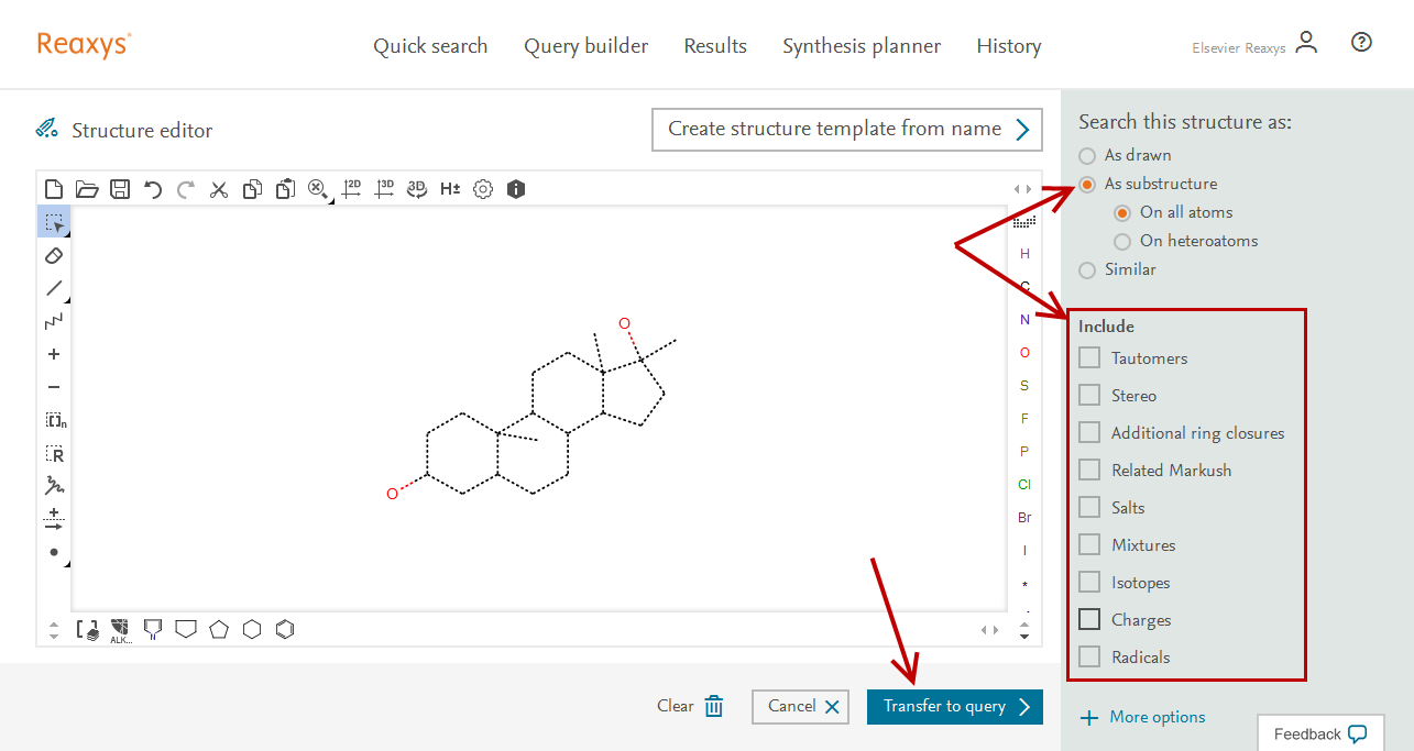 - Similar: Reaxys will find results for a similarity search based on the drawn query