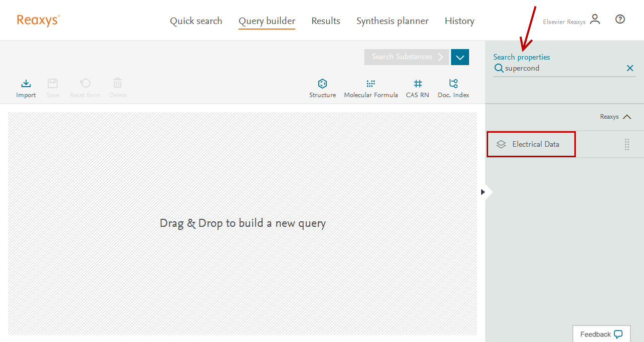 Type superconductivity, in the Search properties field - Drag and Drop Electrical Data onto the query builder.
