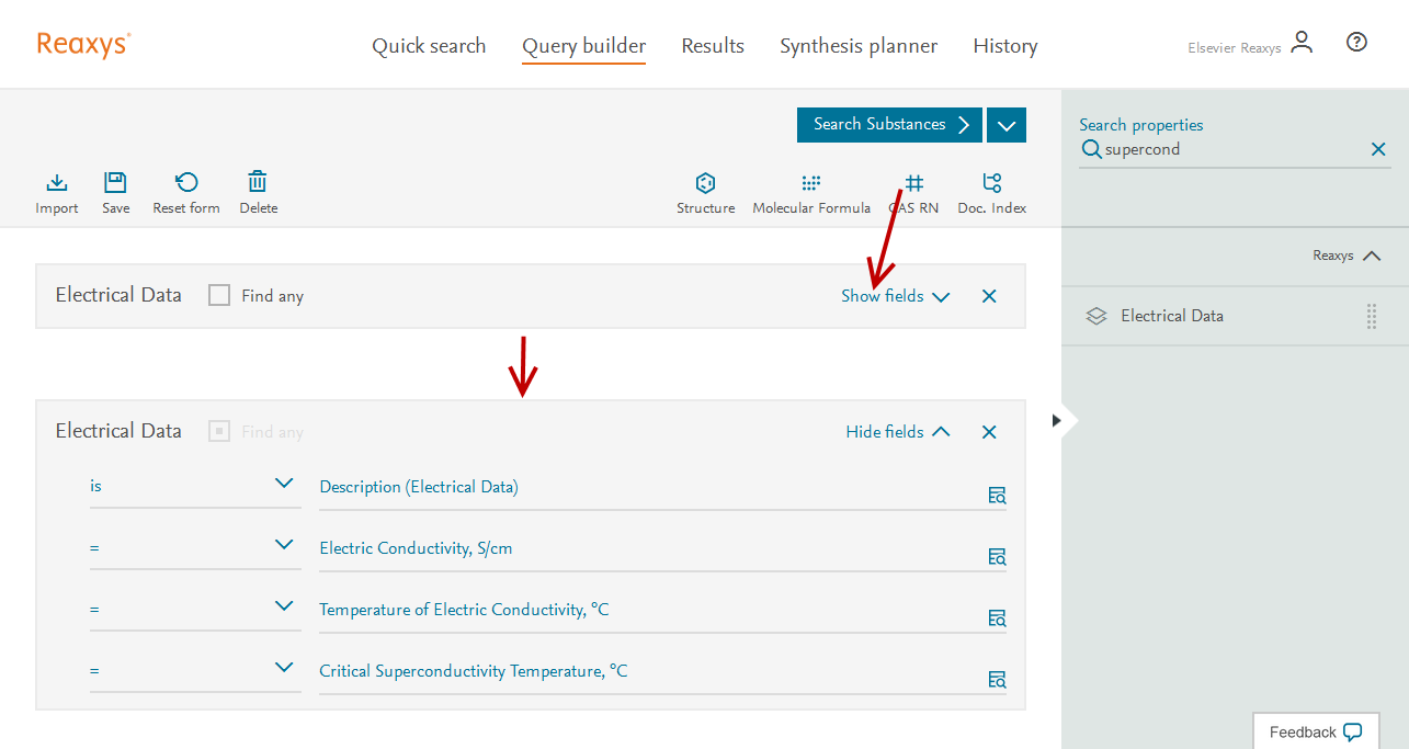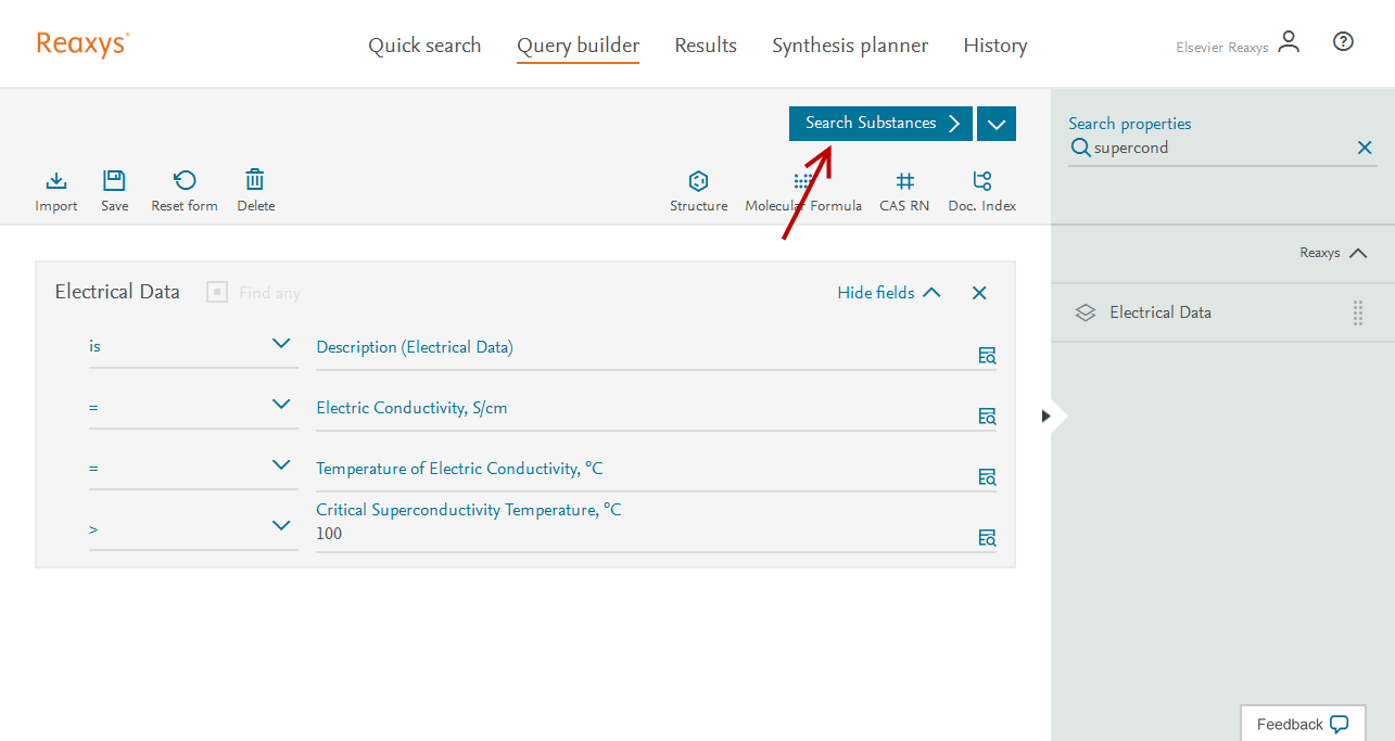Click Query builder and click Delete - In the Search properties field, type superconductivity