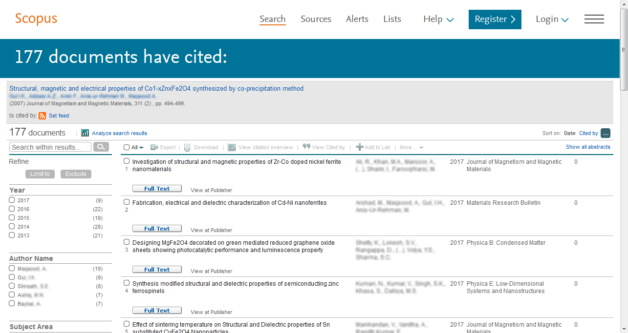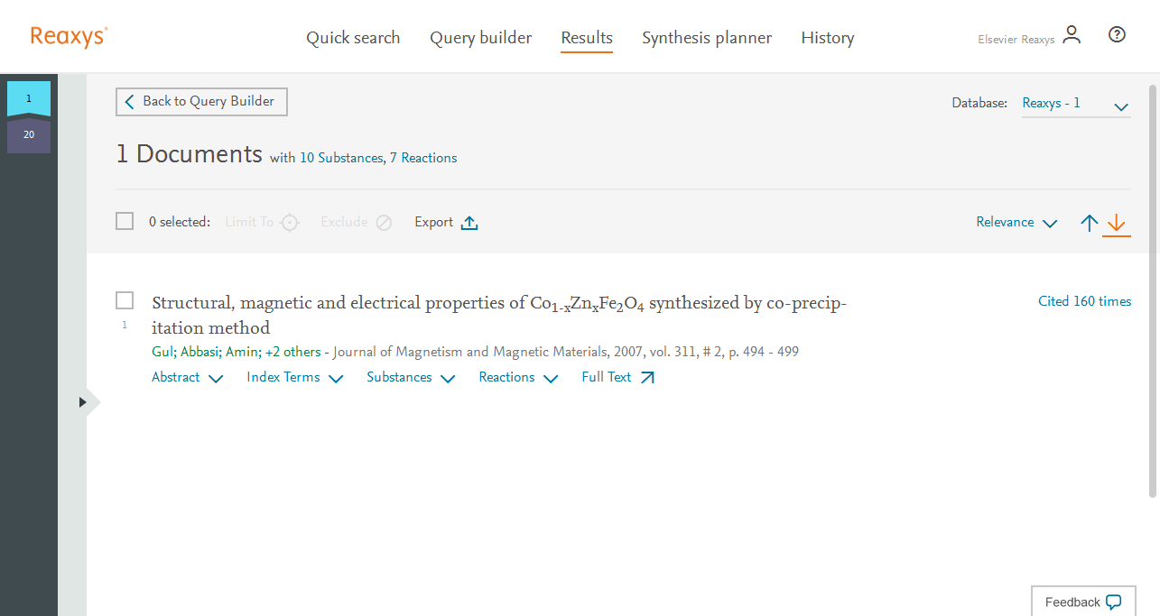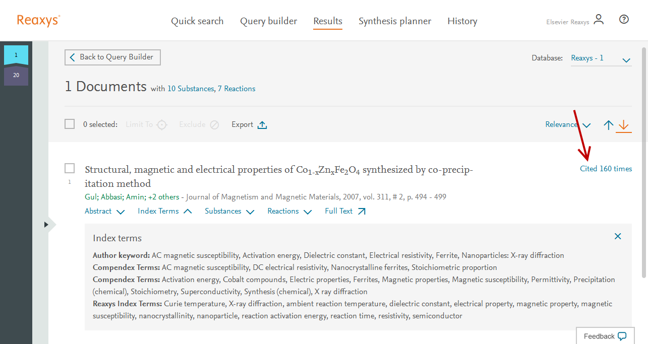 - Scopus is opened displaying the cited documents. The number may differ from what was shown in Reaxys, as Reaxys is updated once a month.
