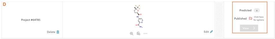 Reaxys Predictive Retrosynthesis produces predicted synthesis routes for small drug like molecules in more than 90% of the cases. However, in some cases e.g. complex heterocycles, molecules with multiple fused ring systems, complex natural products, macrocyclic molecules, it may happen that the predictive retrosynthesis model is unable to resolve the synthesis pathway back to commercially available starting materials (D).