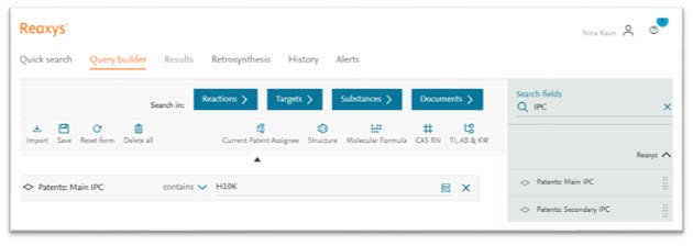 If you would like to view patents from specific IPCs, you can use the Query builder in Reaxys: