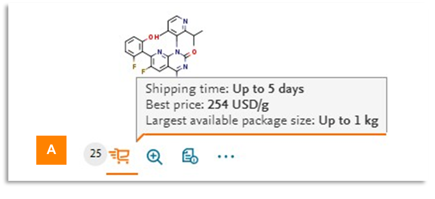 New Icon: A new rapid delivery shopping cart icon (A) will be displayed for substances which can be shipped in up to 5 days