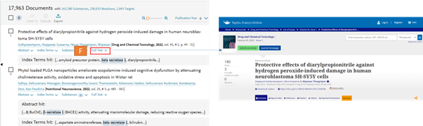 When clicking the full text button of an article (F,) this will now direct you to the publishers website without any intermediary pages. This is the same for both Articles and patent documents.