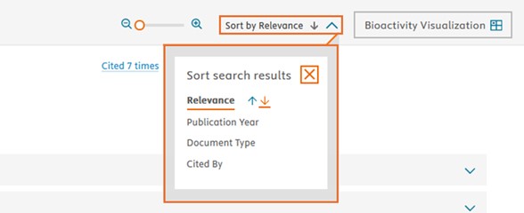 - Title, Abstract (articles and patents), Keywords (10 different types including author keywords) and presence of a structure (based on query)