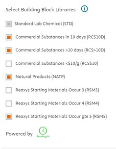 The building block libraries from e-Molecules, SigmaAldrich and LabNetworks have been now replaced with content from Reaxys Commercial Substances moving from 10 million to over 110 million commercial building blocks.