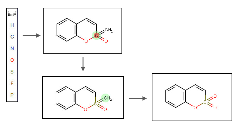 Create structure template from name A coumarin skeleton for the structure is displayed Edit the structure such that the –O-CO- group is replaced by –O-SO2-: