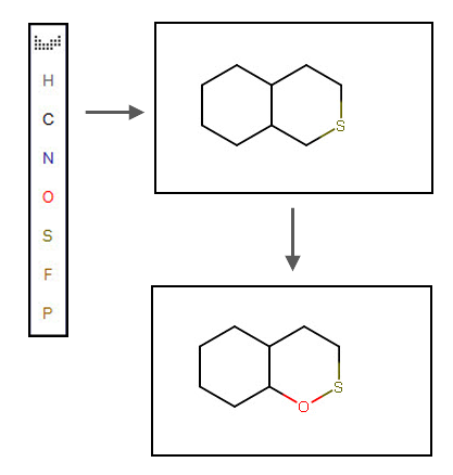 - Click ‘S’ in the atom toolbar, click the appropriate atom