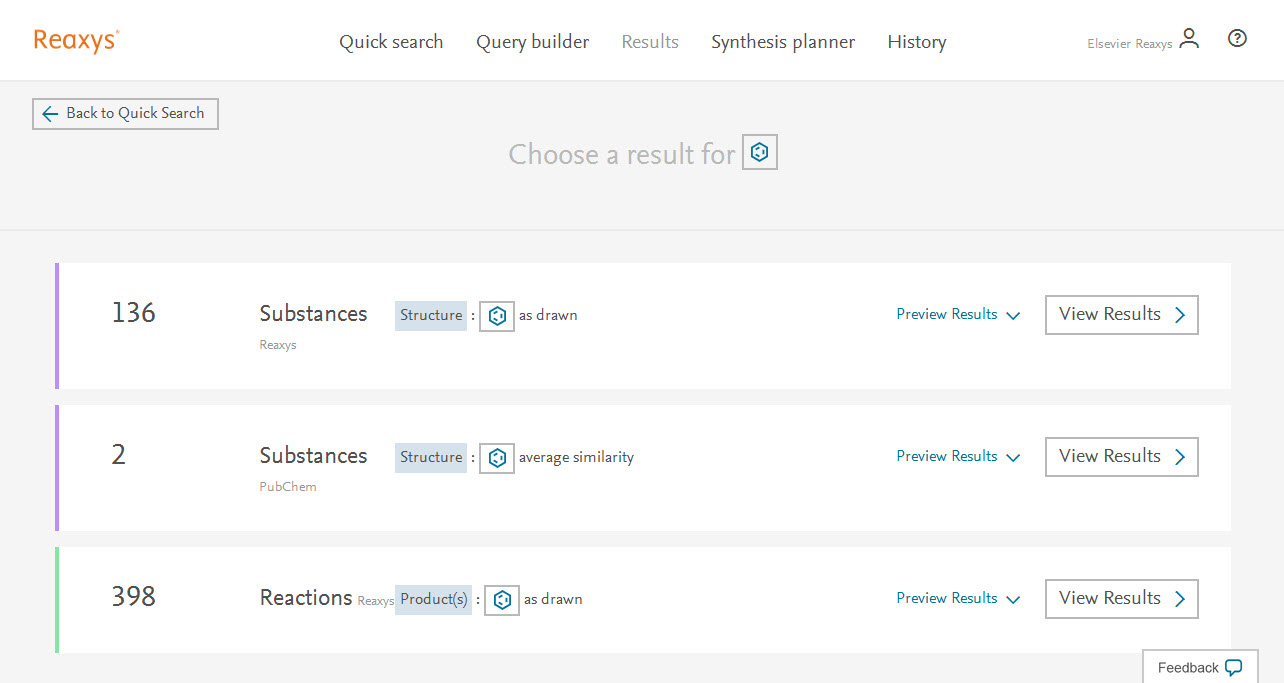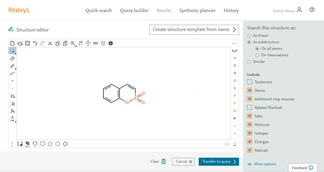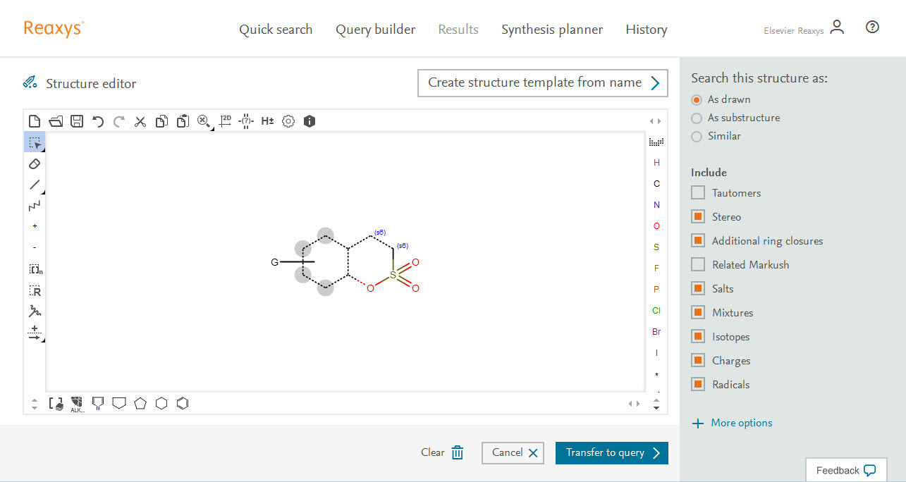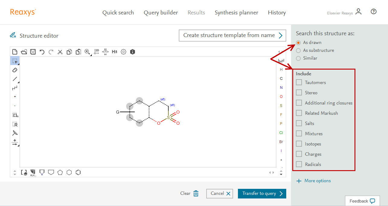 - Similar: Reaxys will find results for a similarity search based on the drawn query