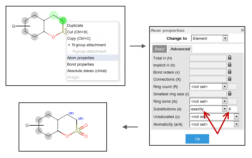 Substructure options - On all atoms will substitute any explicit or implicit hydrogen with any other atom or group