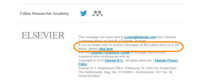 Go to the Elsevier Preference Center, and enter your email address. From here you can manage your communication preferences with us.