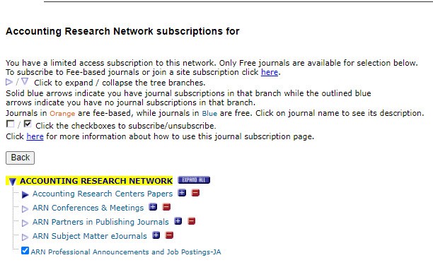 - Click on 'Back' to return to the Journal Subscription Manager page.